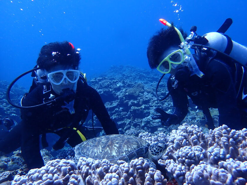 体験ダイビングは可愛いサイズのアオウミガメとご対面!