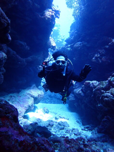 ファンダイダイバーは極上な光が差し込む洞窟内へ
