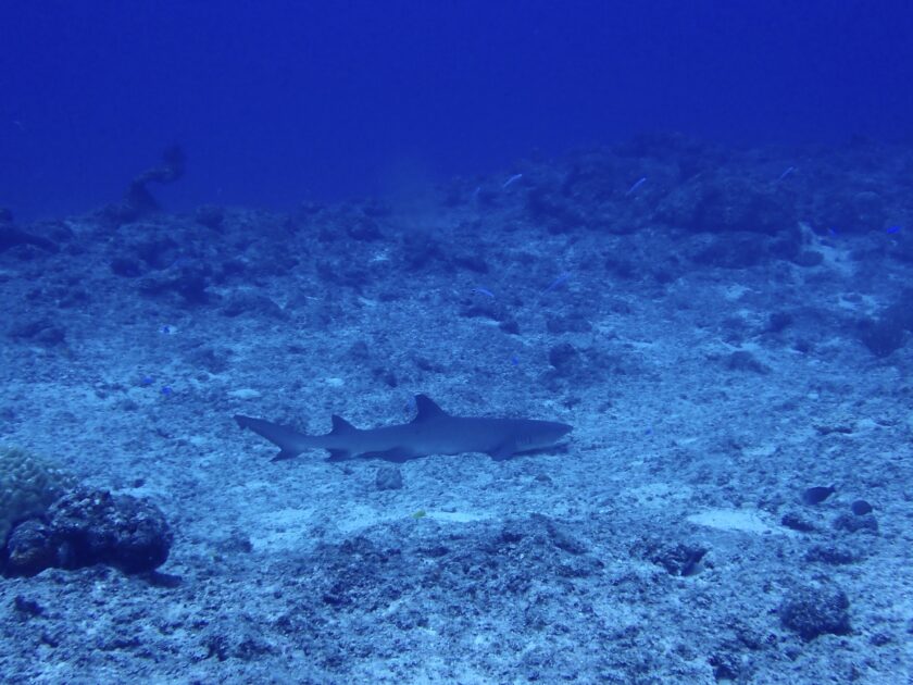 背びれの先が白いのが特徴で、昼間は岩陰で休んでいることが多いサメ。意外とおとなしい性格なので、落ち着いて観察できるダイバーの人気者なんですよ!まさに南国の海を象徴するフィナーレでしたぁ(^^)/