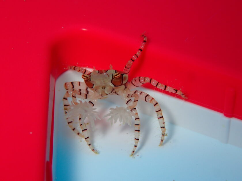 ご自慢のカニバサミイソギンチャクをフリフリして威嚇してました!