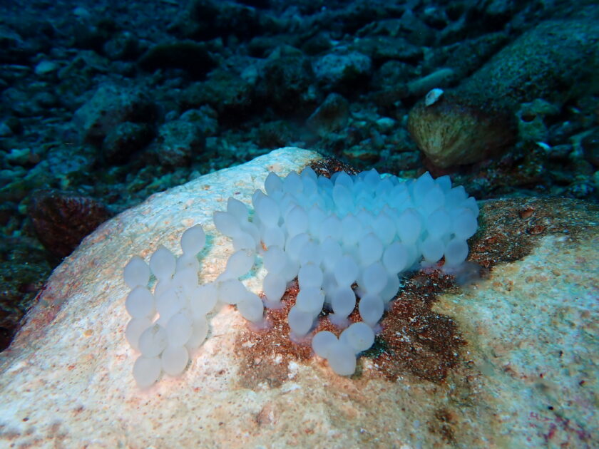 ガレの石をひっくり返すと奇麗な白い塊ファーイカのタマゴがビッシリでした!