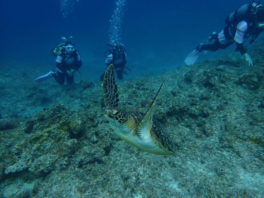 アオウミガメとランデブー出来て6.7匹に逢えましたよ! 【黒島V字ドロップ】透視度20m