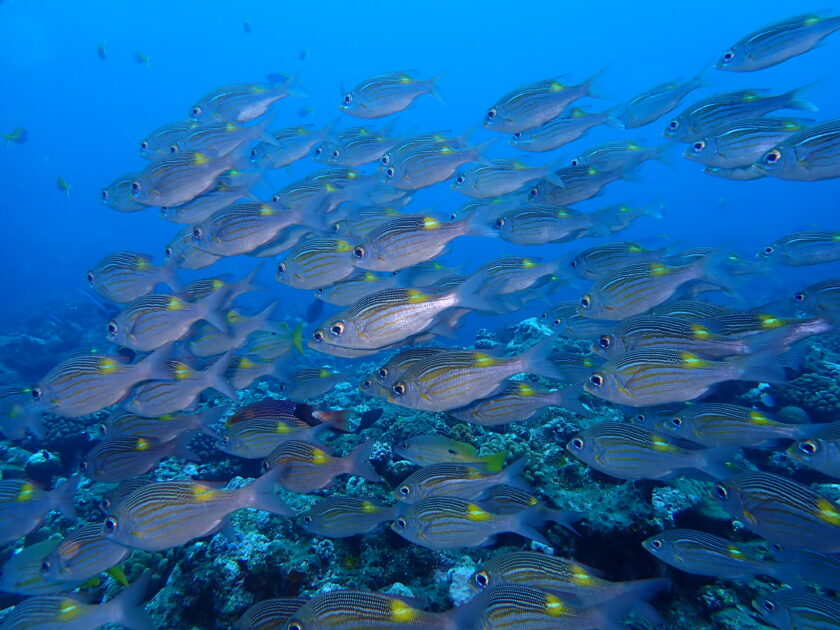 ノコギリダイの群れを眺めながら今日はマンタに会えないかなぁと思ってたら