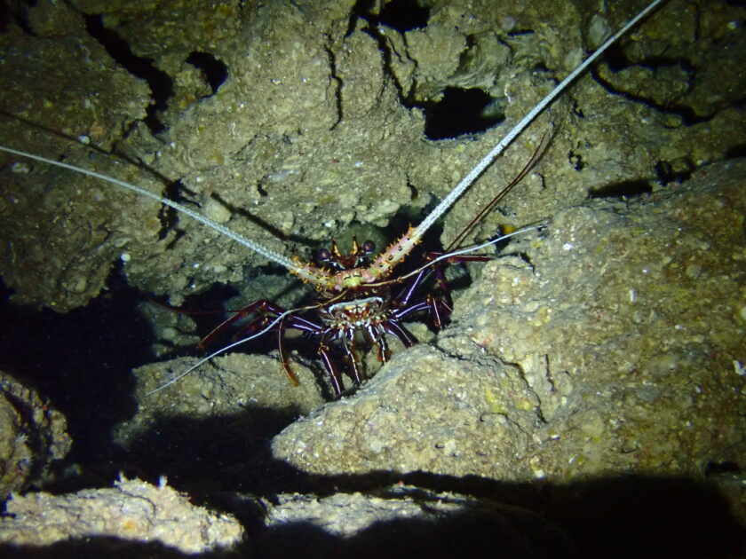 洞窟の中には大きなカノコイセエビが居ました!