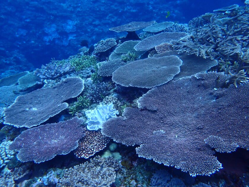昨年石垣島などの八重山諸島は水温上昇によるサンゴの大白化現象でかなりのサンゴ礁が影響を受け死んじゃったんですが、このエリアはエダサンゴもテーブルサンゴも元気に残ったエリアなんですよー!