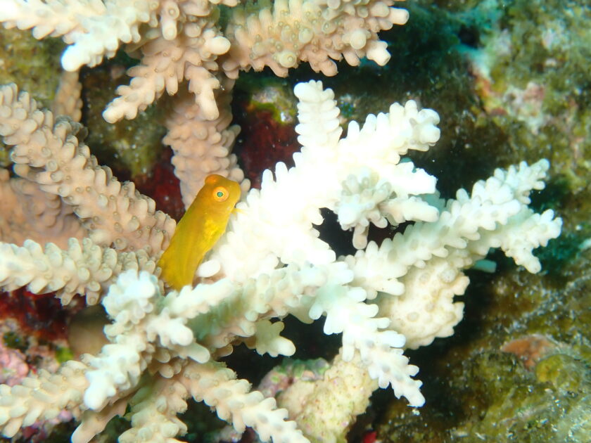 ユビエダハマサンゴにはクロホシイシモチやキンメモドキ、