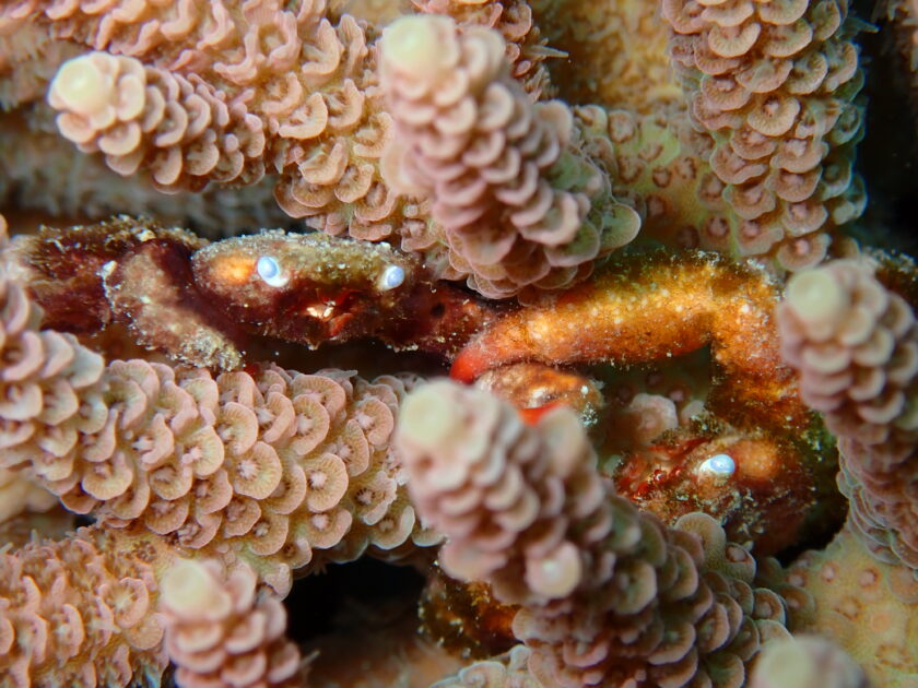 サンゴのお家には可哀そうな名前のキモガニや