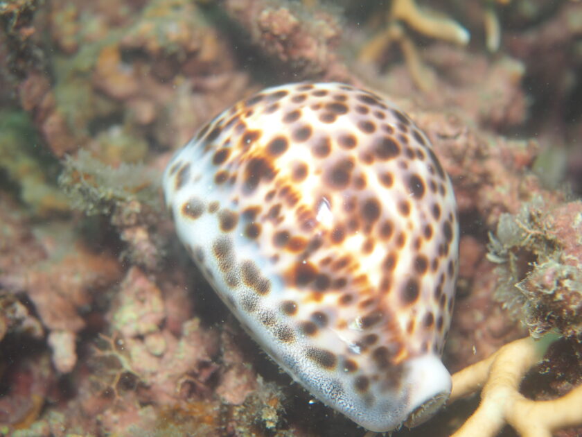ツルツルピカピカのタカラガイ 手元ばかり注視して探索していると