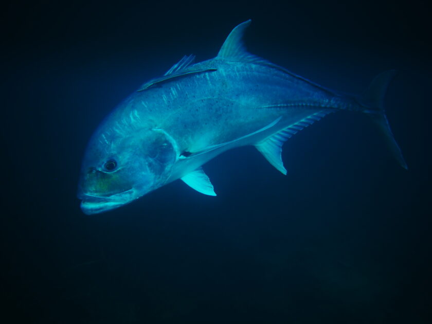 いきなりビッグサイズのロウニンアジが現れて! 何周もダイバーの周りを泳いで颯爽と過ぎ去っていきました! 【名蔵湾ストロベリーフ】透視度10m そしてサーチ&サーチ&サーチでようやく見っけ!
