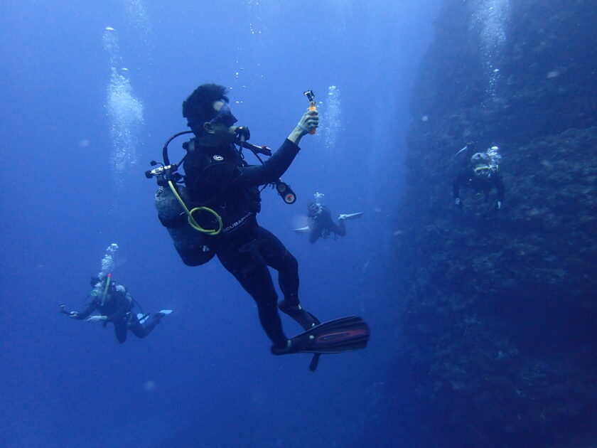 V字の亀裂にはアカマツカサやハタンポが群れてました! 【竹富島ブラックパール南】透視度10m