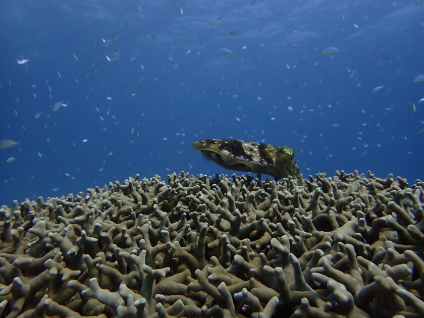 ユビエダハマサンゴにはコブシメの♀が産卵しに来てました!