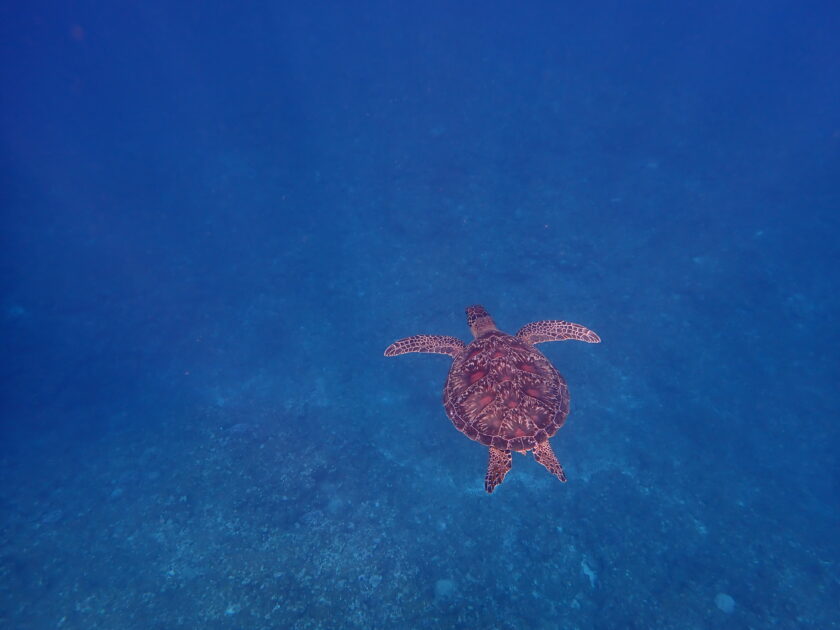 ウミガメとランデブー 黒島名物のウミガメ様!ゆったりと優雅に泳ぐ姿は、まさに海の守り神やぁ