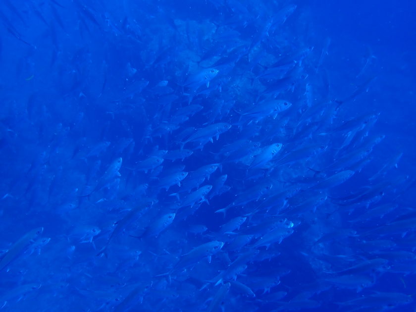 30m以深にはさらに群れ群れ数百匹のギンガメ玉が!!!