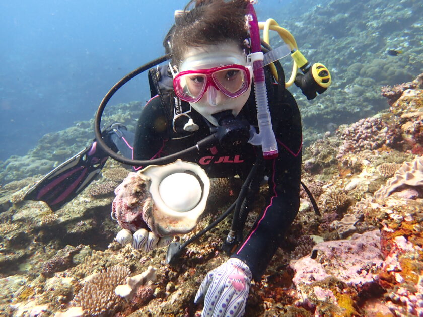 初体験ダイブでは夜光貝をGET 【宮良湾ケーブ 】透視度20m