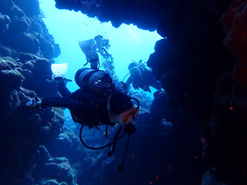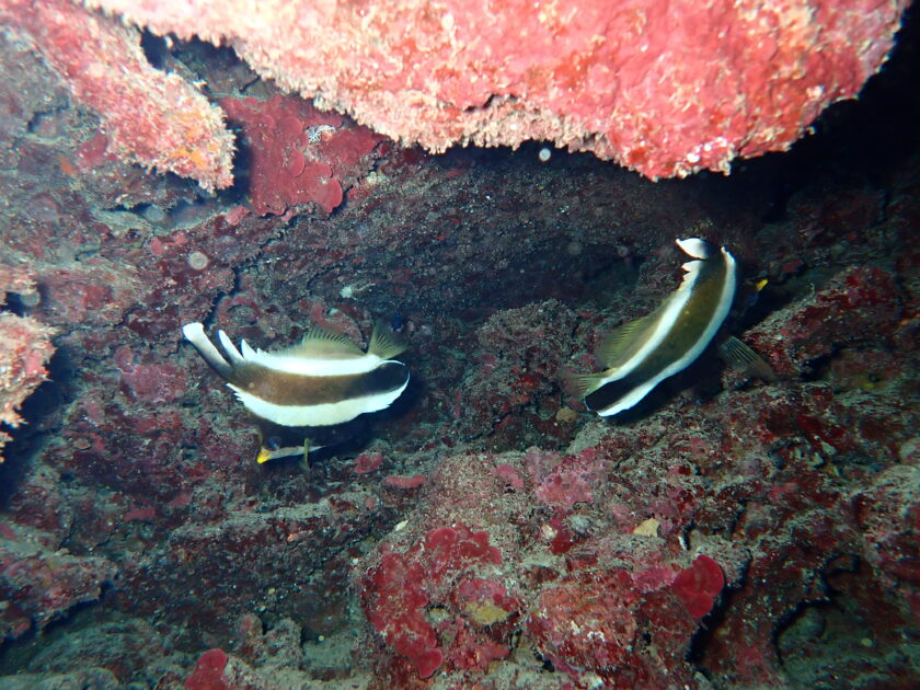 洞窟内にはミナミハタタテダイやレアなシチセンベラ