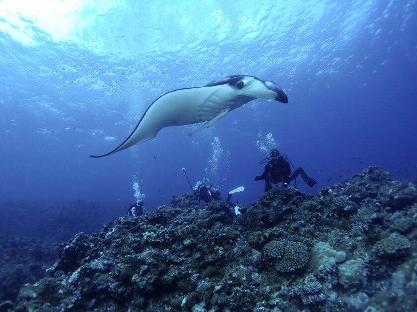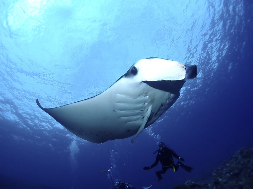 最後は、ダイバーたちの頭上を悠々と通り過ぎるマンタ様