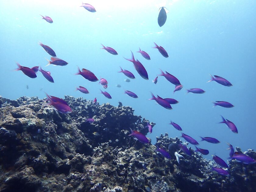 赤紫の体色が綺麗なハナゴイの群れからスタート