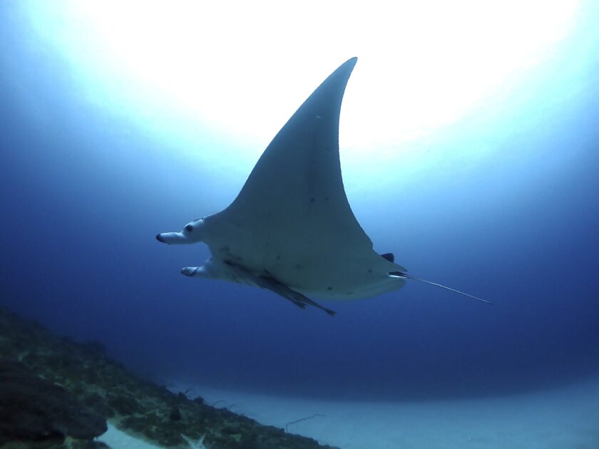 頭上を通り過ぎるマンタ