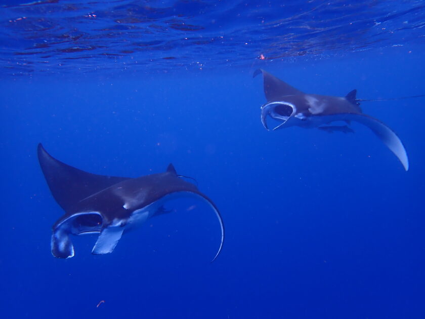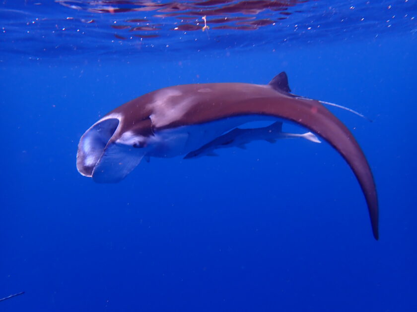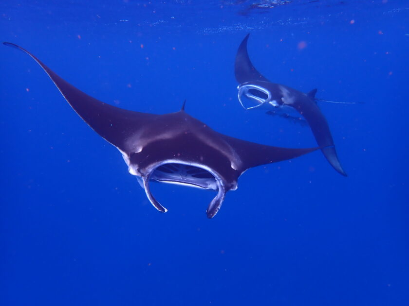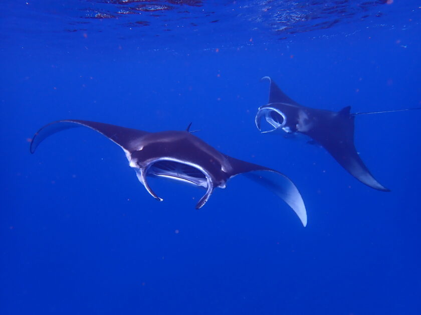 ガバーっと大きな口を開けて超至近距離でマンタウォッチング