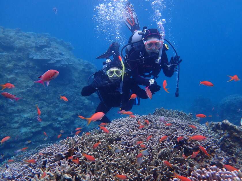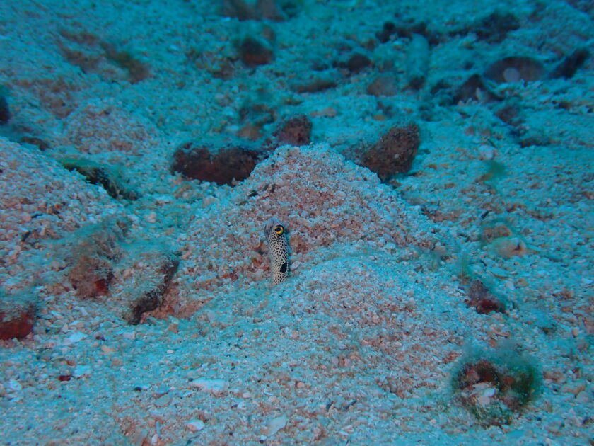 はいさーい!相変わらず窒素は溜まってもお金は貯まらないコーキでーす(^^)/ 今日はファンダイビング・体験ダイビング・シュノーケリングで海へGO~☆彡エメラルドグリーンの海をバックに、本日のメンバーで最高のスマイル!冬の石垣島とは思えないほどの快晴に恵まれ、チームワークもバッチリ!国籍も年齢もバラバラな仲間たちが、海を通じて一つになれる瞬間でーす! 気温25℃ 水温21℃ 南東の風 晴れ 【大崎ハナゴイリーフ/カメハウス】透視度20m サンゴの周りを舞うアカネハナゴイの群れ! default プランクトンを食べるために群れる彼らは、光が当たると宝石のように輝きます。ダイバーを包み込むオレンジ色の世界は、竜宮城のよう! 砂地からひょっこり顔を出すチンアナゴ!