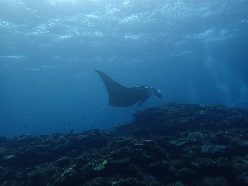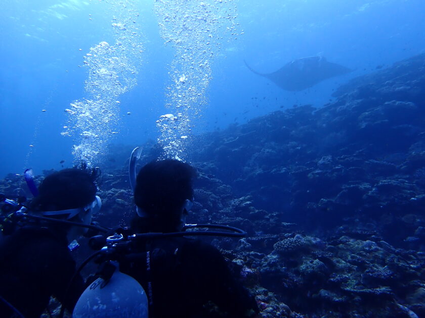 クリーナーの施術を求めて集まる彼らの優雅な舞いに、ダイバーも思わず釘付け。巨大な翼が頭上を通る瞬間、心拍数は最高潮!悠然としたその姿は、海の王者の風格が漂います。一期一会の出会いに感謝感謝でエキジット(^^)/