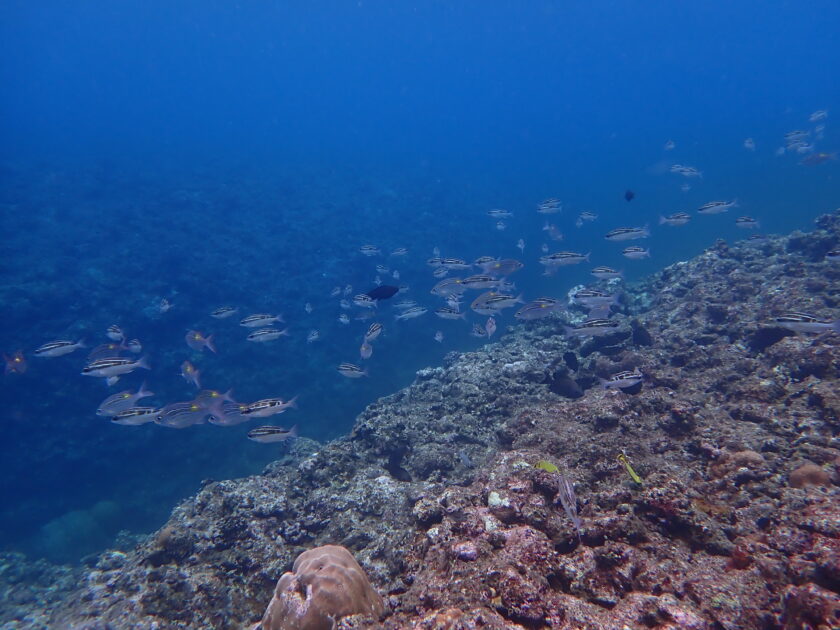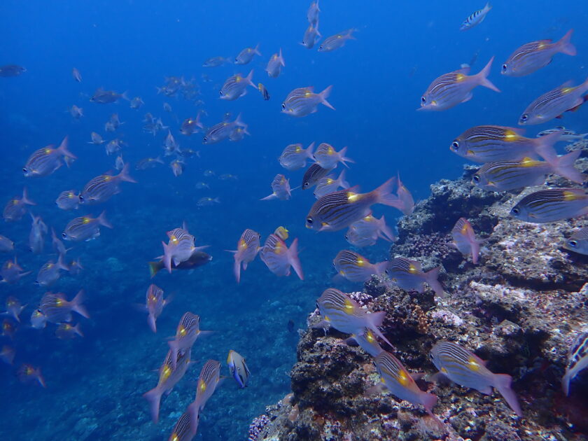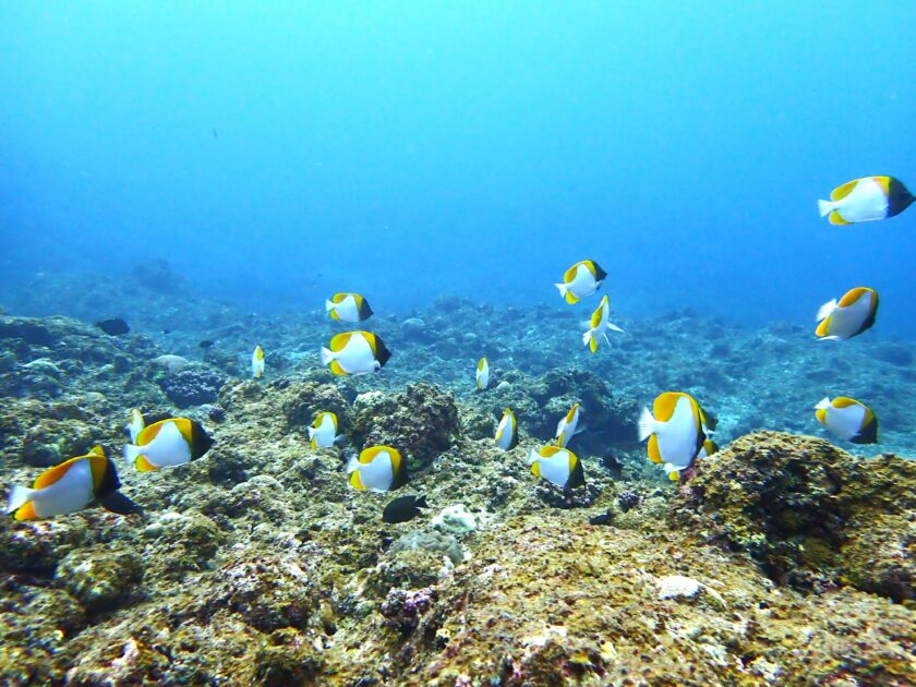 リーフ沿いにはカスミチョウチョウウオが群れ