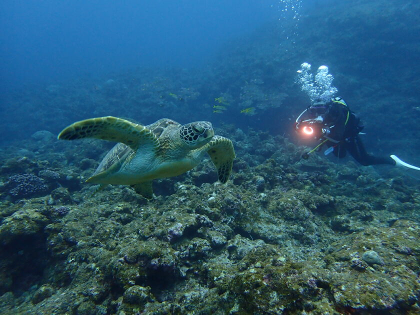 計5匹のウミガメと遭遇ー!写真ないですがレアなアカウミガメにも逢えました!