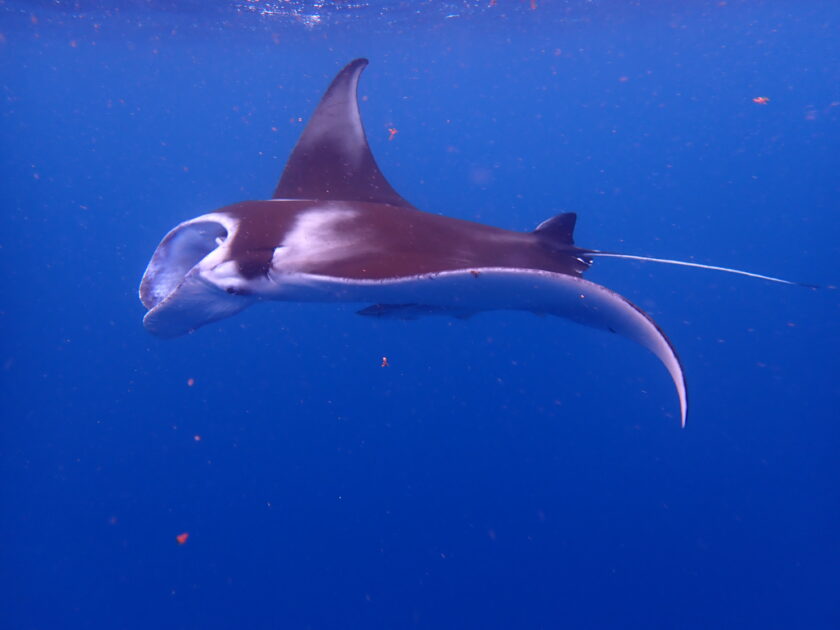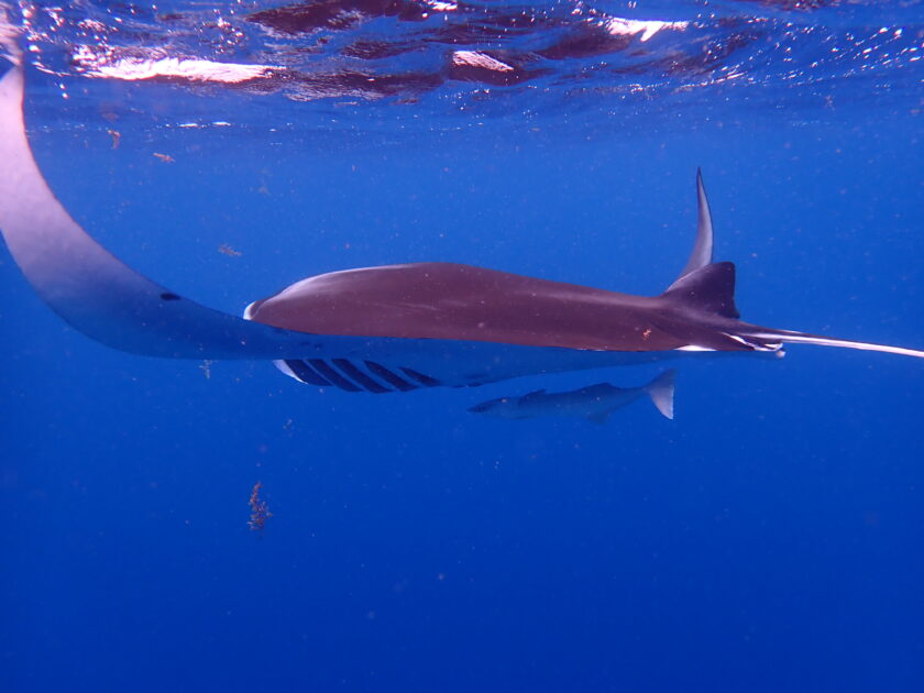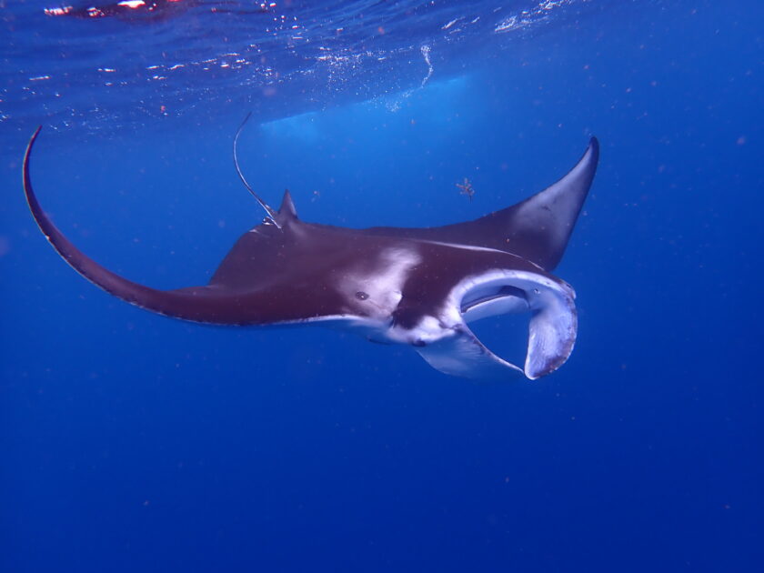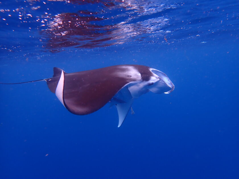 水面付近に集まってきまーす!冬の水面マンタは超至近距離でマンタが見れるので