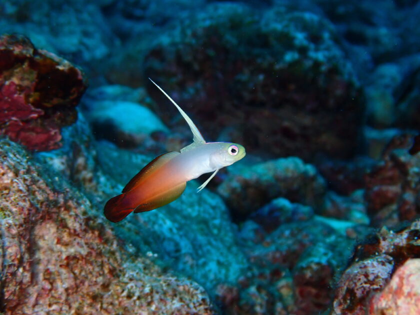 ガレ場にはヒレがピクピク動いて可愛いハタタテハゼ