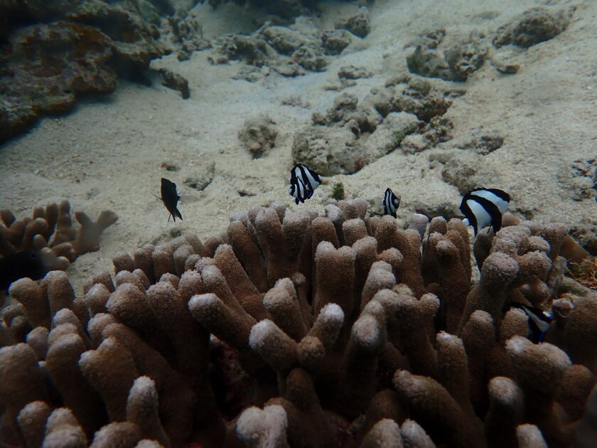 ユビエダハマサンゴにはミスジリュウキュウスズメダイや
