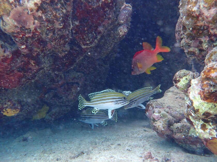 大きなハマサンゴの隙間にはヒレグロコショウダイやトガリエビスなどが居ました(^^)/