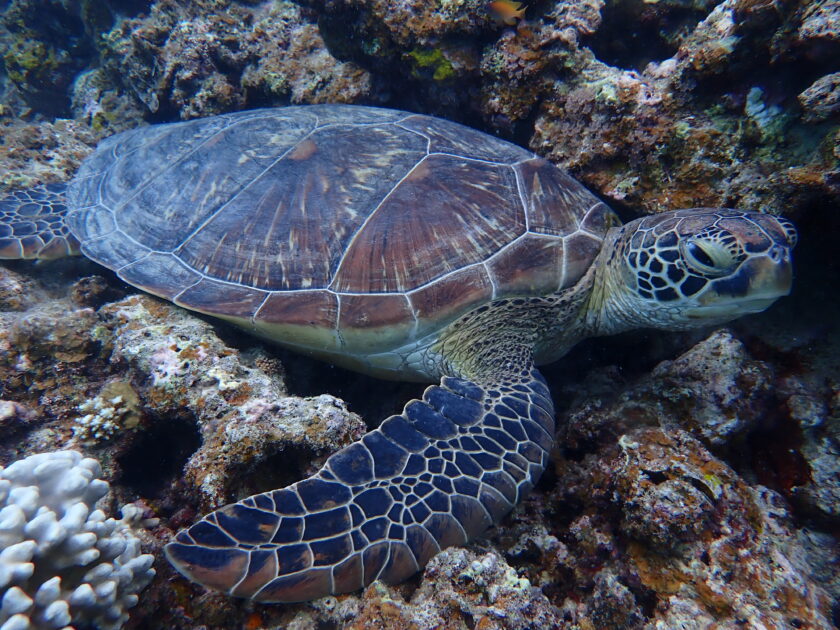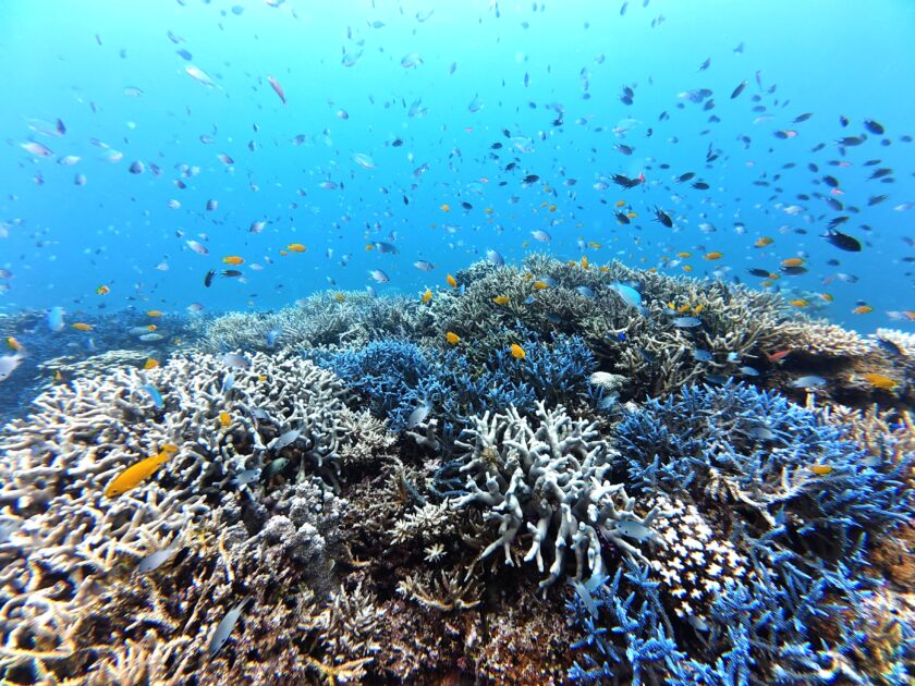 水中に入っちゃえば中は穏やかで癒しのサンゴ畑~!