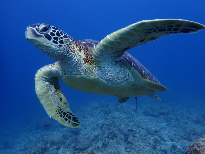 最初に迎えてくれたのはアオウミガメ~優雅にパトロール中?のんびりした泳ぎを見てるだけで、こっちまで癒やされますよね~♬