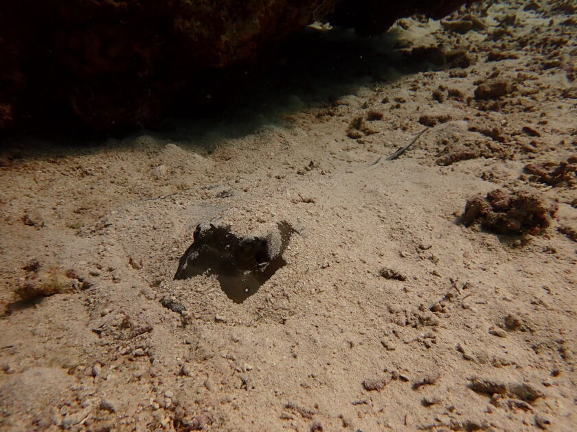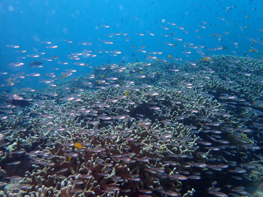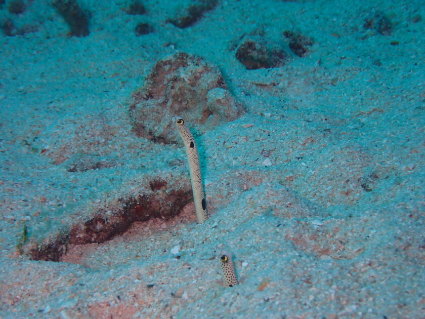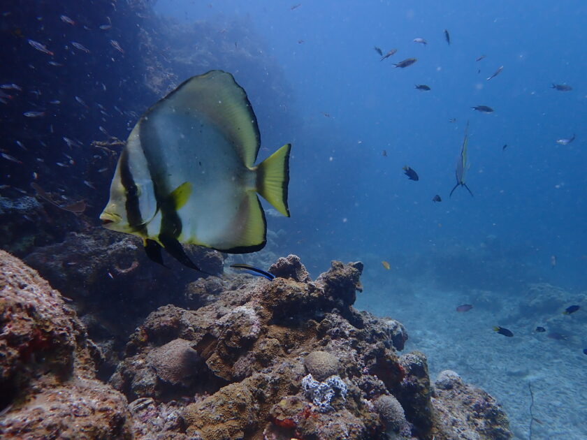 砂地の中にヤッコエイが潜んでました! 【名蔵湾ロコロック】透視度15m カラフルサンゴにスズメダイが賑わい