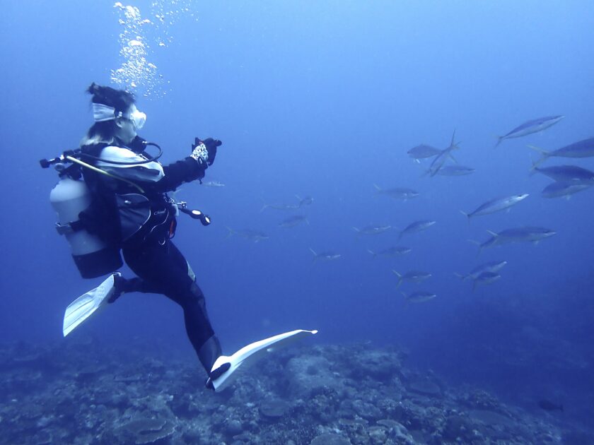 ダイバーの頭上をツムブリがビュンビュン回ってて、まるで天然の水族館。吸い込まれそうな透明度で最高に気持ちよかった〜!