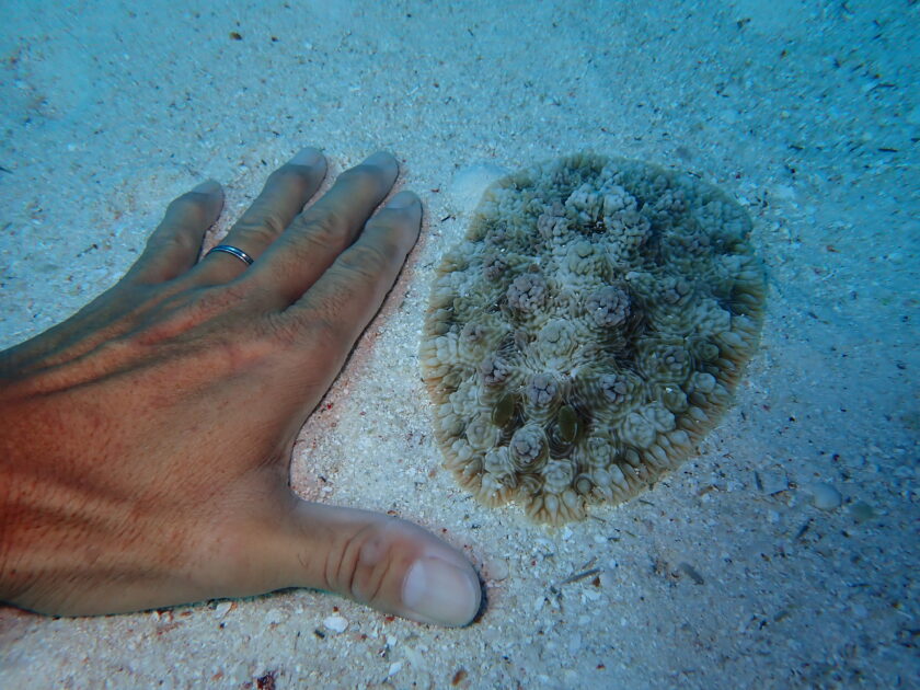 ナマコですか?イソギンチャクですか?ってぐらいデカ過ぎるハンドサイズのコウシンウミウシが砂地を凄い勢いで行進中でした!