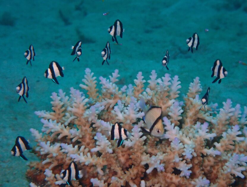メインのコモンシコロサンゴにはグルクン幼魚たちや