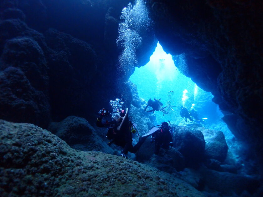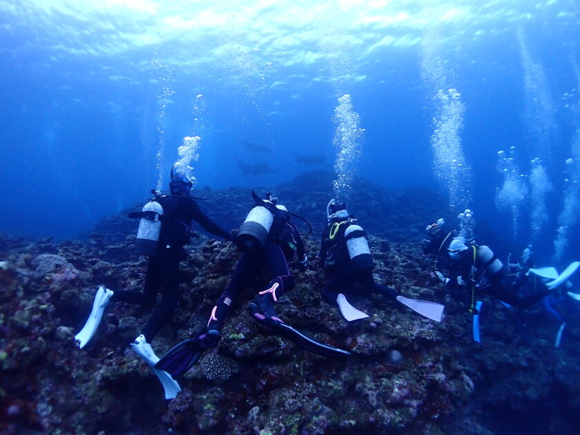 シルエットになったダイバーと、立ち昇る気泡が幻想的で冒険心をくすぐるこの景色は何度潜っても飽きることがないですねー!