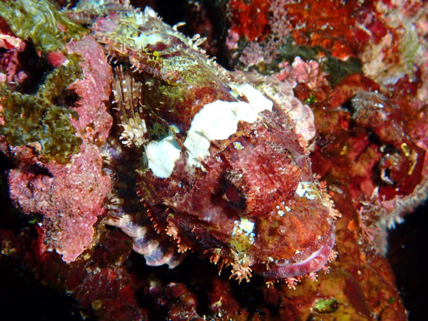 最初はただの岩だと思いましたがよーく見ると目がある!「見つけた!」という発見の喜びもダイビングの楽しさ。隠れ上手な彼らを探すのは、宝探しみたいですね~!