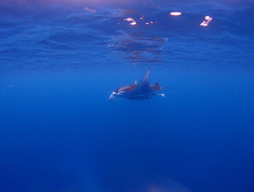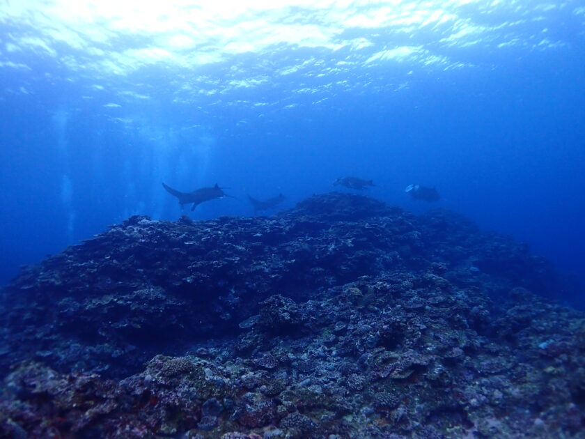 エキジットして移動しようと思ったら水面にプカプカとヒレが見えるぞ~!!!大きな口を開けて食事をするマンタの姿は迫力満点で翼を広げると3メートル以上!その優雅な羽ばたきは、まさに「海神様」と呼ぶにふさわしい!