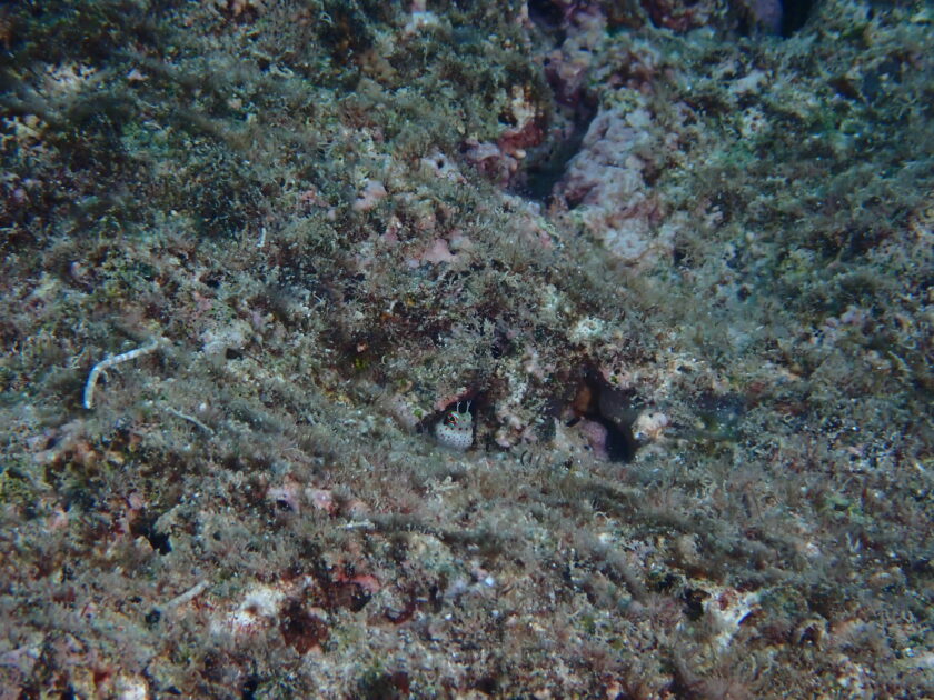 目が合うと「何してるの?」と言わんばかりの表情。この愛くるしさがダイバーに大人気でサンゴの死骸の穴を住処にする小さな住人は周囲を警戒しながらも、好奇心旺盛にこちらを見つめる瞳にキュン死です!