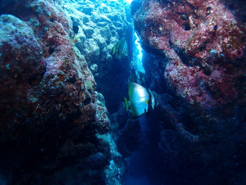 crevice(岩の割れ目)を悠々と泳ぐツバメウオ