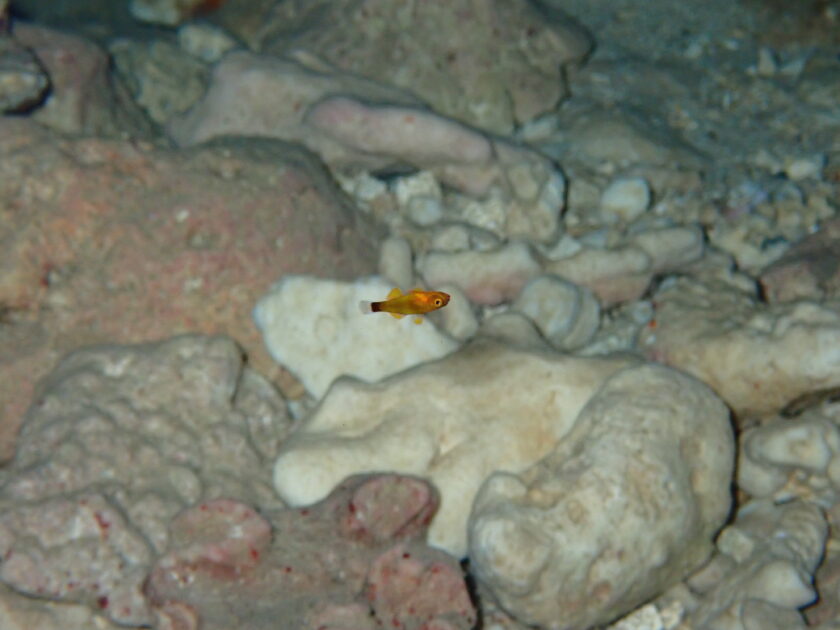 アオギハゼそっくりで洞窟内や岩陰でいつも逆さまでホバリングしているお魚さんです。同じく臆病な性格ですが姿がとってもキュートで癒やされます。