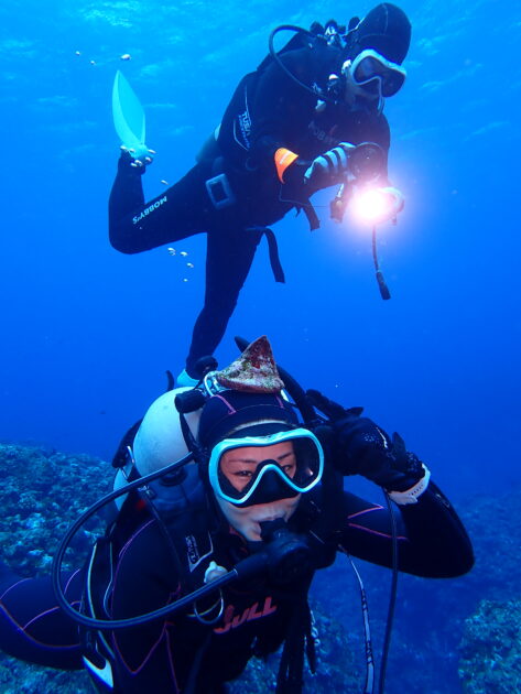 海は、大人を子供に戻してくれる。浮遊感を楽しみ、光を追いかけ、時には冗談を交わして笑い合う。水中で結ばれるバディとの絆は、何よりも大切な宝物です。真剣に、かつ遊び心も忘れないのが南ぬ島流の楽しみ方なのだ!