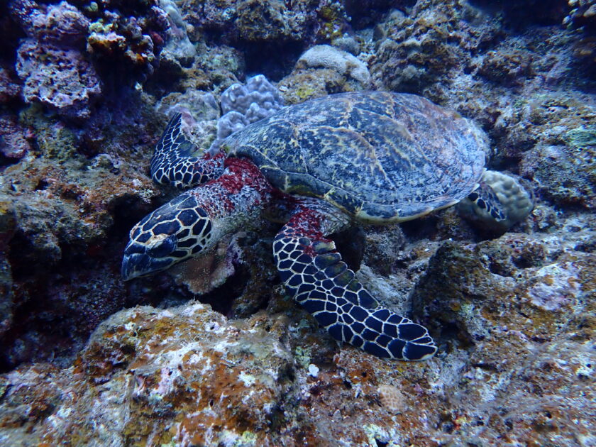 はいさーい!相変わらず窒素は溜まってもお金は貯まらないコーキでーす(^^)/春分の日の今日はファンダイビング&シュノーケリングで海へGO~☆彡 気温25.7℃ 水温22~23℃ 東南東の風 雨のち晴れ 【黒島タートルリーフ】透視度20m