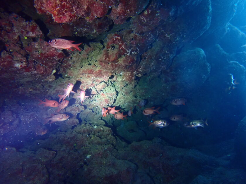 洞窟の中でアカマツカサの群れに遭遇!