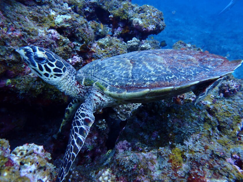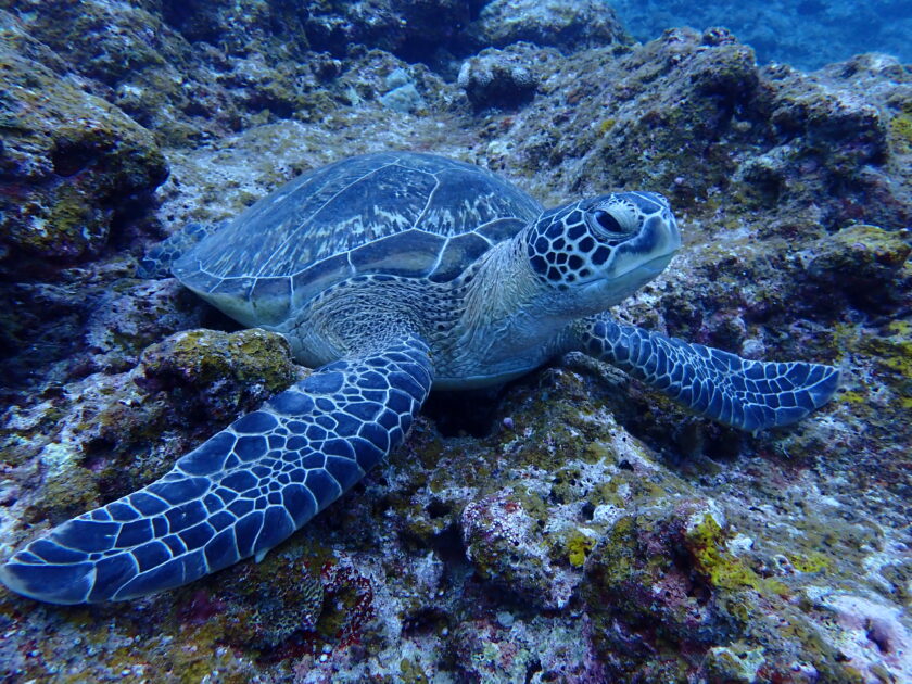 エントリーすると早速アオウミガメがお出迎え