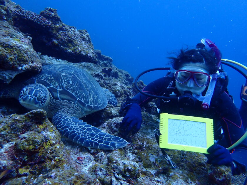OWD講習も無事終了でカメさんに合格祝いしてもらいました! 【黒島 仲本ケーブ】透視度20m