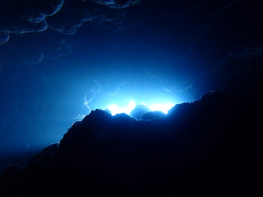やや透視度が落ちてしまいましたが光が射し込む洞窟や