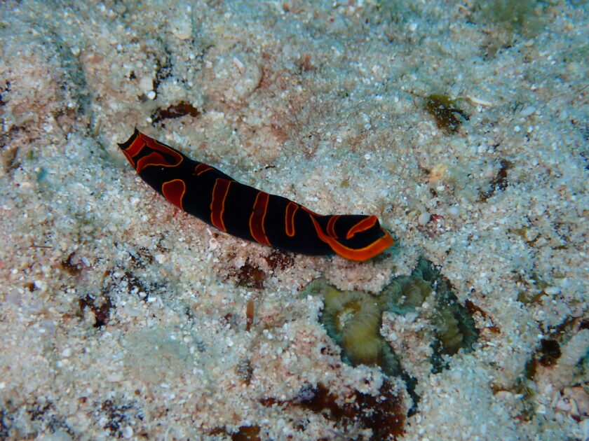 漆黒の黒に鮮やかな赤オレンジが特徴のアカオビツバメガイがスポーツカーように高速で移動してました!